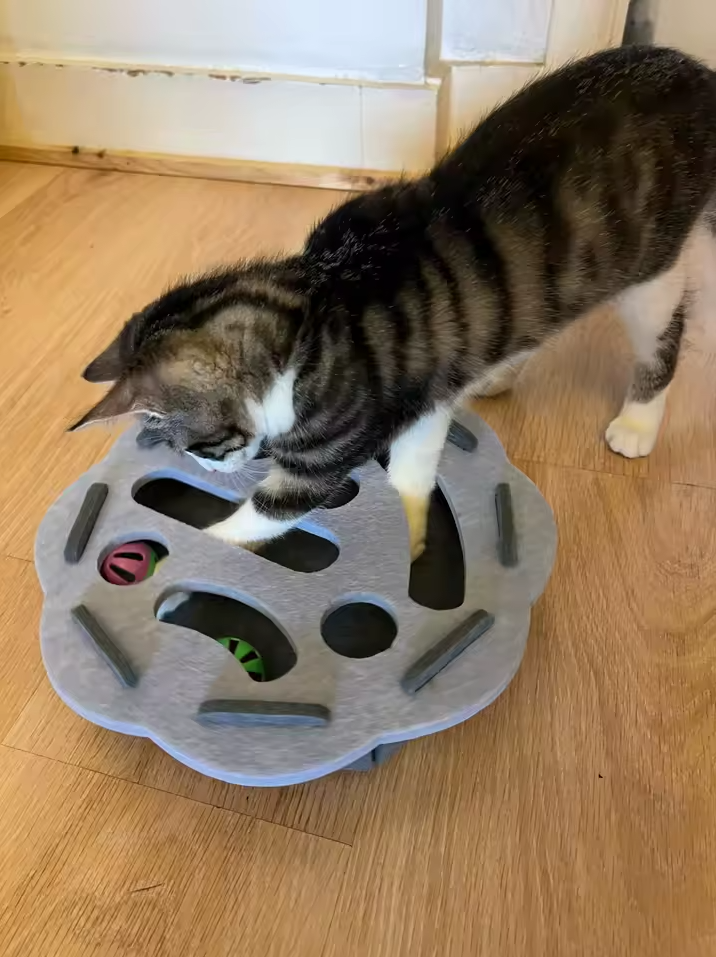 Most plastic toys are tactilely "sterile," causing your cat’s claws to slide off and leading to "Tactile Frustration". Purrpuzzle uses Dynamic Tactile Foraging, featuring a suede and felt maze that allows for "Interlocking Engagement". This provides the "grip-and-pull" resistance that mimics real prey, rewarding your cat's predatory brain and extending play sessions by up to 300%.