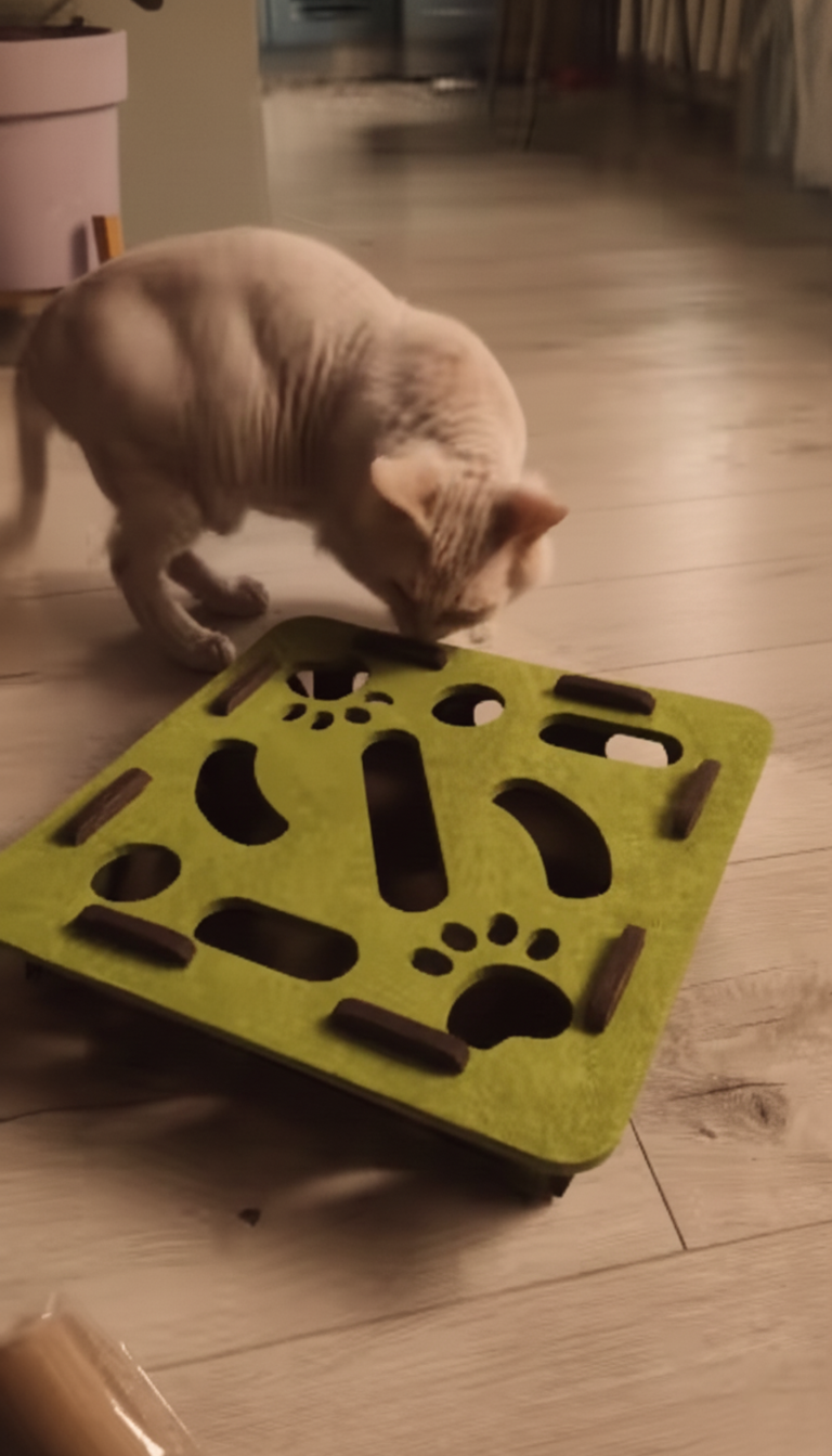 Cats often "solve" plastic puzzles once the pattern is memorized. Purrpuzzle's multi-directional, obscured maze structure is designed to be unpredictable. Because it provides a complete hunting cycle—Stalk, Chase, Pounce, andCapture—it remains biologically satisfying long after the novelty of a standard toy wears off.